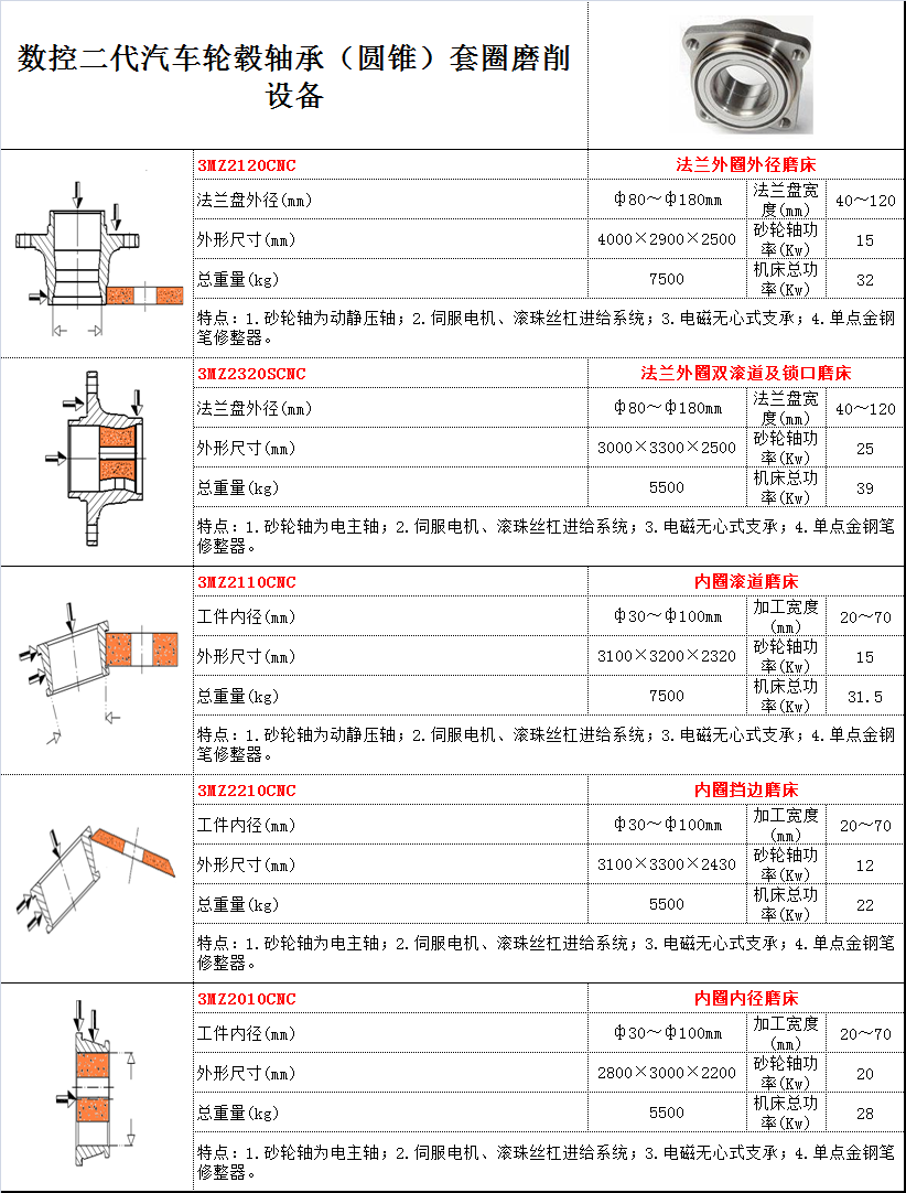 用途:磨削二代汽車輪轂軸承的套圈(圓錐) 特點: 1.砂輪軸為動靜壓軸; 2.伺服電機、滾珠絲杠進給系統(tǒng); 3.電磁無心式支承; 4.單點金鋼筆凸度修整器。