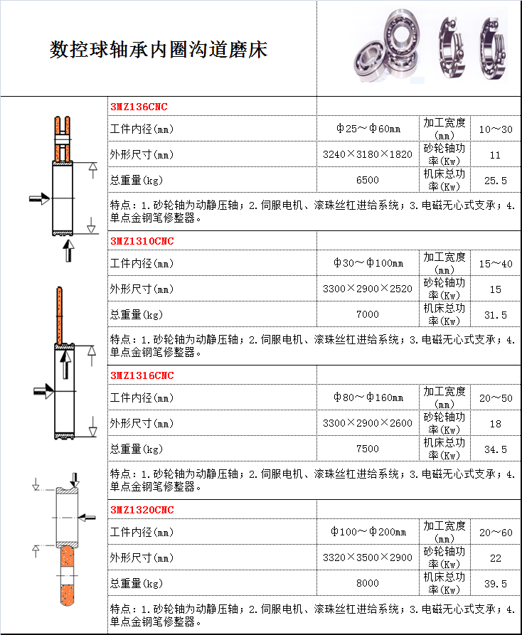 用途:磨削球軸承內圈的溝道 特點: 1.砂輪軸為動靜壓軸; 2.伺服電機、滾珠絲杠進給系統(tǒng); 3.電磁無心式支承; 4.單點金鋼筆修整器。